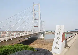 ![]() The island is accessed by crossing Changxing Island Bridge, beside which can be seen a suspension bridge for pedestrians | |