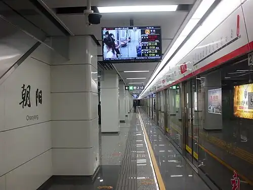 Chaoyang (Chinese: 朝阳) is the southern terminus on Line 2 of the Hangzhou Metro in China.[1] It is located in the Xiaoshan District of Hangzhou. This station has three exits.