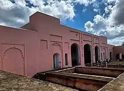 The Tahkhana Complex, also known as Shah Shuja Tahakhana, is a Mughal-era palace in Shahbajpur, Shibganj Upazila, Chapainawabganj, Bangladesh, built between 1639–1658 by Shah Shuja for his spiritual guide, Shah Syed Niyamatullah. Named "Tohakhana" meaning "cold building" in persian, it served as a winter residence. The three-story complex features Mughal architecture with brick and black stone, including a main palace, three-domed mosque, a domed tomb, unnamed graves, and a lake called Dafe-ul-Balah.[15]
