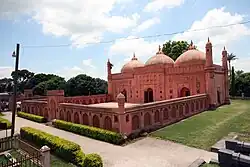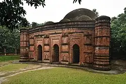 The Darasbari Mosque, located in Shibganj Upazila, Chapainawabganj, near Chota Sona Mosque, was built in 1479 CE by Sultan Shamsuddin Yusuf Shah. The medieval Bengali Jami Masjid features exposed red-tinged bricks with terracotta ornamentation.[16]