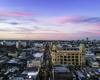 | A drone image looking south down Chapel Street Precinct at sunrise | |