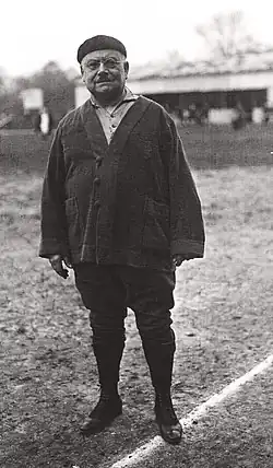 Despite his appearance, short stature, pot-bellied profile, and always with glasses, Brennus was a fervent sportsman, dedicating his life to the cause of physical exercises.[1] On 5 December 1895, he founded the Sporting Club Amateur, which later became Sporting Club universitaire de France rugby (SCUF) in 1902.[1][4] He served SCUF as its first president and also as a member of its first rugby team from 1896 to 1900, being its captain during the first two seasons.[1] His position as president of the SCUF allowed him to establish himself as one of the leaders of the USFSA since 1896, being involved in all of its Commissions, such as rugby, cycling, athletics, swimming, the USFSA Council, and the Paris Committee.[1] He was involved in football; for instance, on 25 April, he started for Club Français in the final of the inaugural Coupe Manier against the newly crowded champions of France Standard AC, helping his side to a 4–3 win after extra-time.[5]