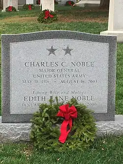 Noble died on Aug. 16, 2003 and was interred in Arlington National Cemetery.[15] Noble was listed in "Engineers of Distinction", "Who's Who in Engineering," "Who's Who in America," and for his military service won three Distinguished Service Medals with two oak leaf clusters, three awards of the Legion of Merit with two oak leaf clusters, and bronze star. He fathered five children, four of whom survive including Jeanne Davey (b. 1943), Barbara (Lynn) Noble (b. 1947), Carol Noble (b. 1950), and Steve Noble (b. 1952).[16]