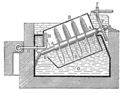 He was the author of numerous inventions, including the cagniardelle, a blowing machine, which consists essentially of an Archimedean screw set obliquely in a tank of water in such a way that its lower end is completely and its upper end partially immersed, and operated by being rotated in the opposite direction to that required for raising water.[3]