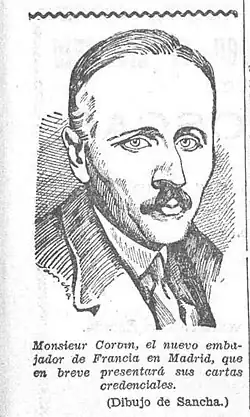 Corbin served as the French ambassador to Spain from 1929 to 1931.[1] On 17 April 1931, he communicated France's recognition of the newly pronounced Second Spanish Republic to the Provisional Government, helping legitimise the new regime and prompting a wave of recognition by other countries.[6]