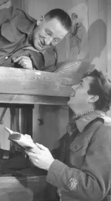 ![]() Coward on the set of The Password Is Courage with Dirk Bogarde, who played him in the film | |
