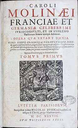- ^ a b c Decock, Wim (2019). "Charles Dumoulin (1500–1566)". In Descamps, Oliver; Domingo, Rafael (eds.). Great Christian Jurists in French History. Cambridge University Press. pp. 97–116. doi:10.1017/9781108669979.007. S2CID 187850891.