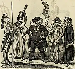 Political caricature from 1819, the central figure with the staff intended as Charles Ethelston