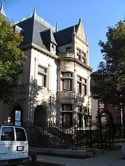 Richard Morris Hunt became the leading proponent of French-inspired architecture after his return to the United States from his studies in Europe in 1855. In 1873 he received both his first urban commission and his first commission in the city of Chicago[18] when he built a house in the related Second Empire style for the iconic Chicago retailer Marshall Field[19] at 1905 S. Prairie Ave that was considered to be the "first really artistic dwelling house" in Chicago,[20] and although the country's enthusiasm for French-styled buildings that he was largely responsible for creating waned in the early years of the 20th century, interest in it remains with us to this day.
