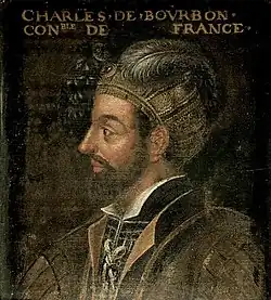 After the death of his father, he was raised by his pious mother.[2] Despite this devout upbringing, he would show no interest in cultural or religious innovation in his adult life.[3] Charles' sister, Françoise entered into the Bourbon-Vendôme branch of the royal family in 1513 by her marriage to Charles, comte de Vendôme (count of Vendôme).[2]