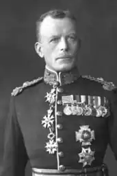 He served in the First World War, still as commander of the 1st Cavalry Brigade, serving with the British Expeditionary Force (BEF) on the Western Front in the early months of the war, where he took part in the action at Nery.[5] He was promoted to major general in February 1915, "for services rendered in connection with Operations in the Field",[22] and in May he was made general officer commanding (GOC) 3rd Cavalry Division, which he led for the next few months.[23] He was GOC of the 28th Division from October onwards, which he soon led to the Macedonian front, where both he and his division would remain for the rest of the war. He was GOC XVI Corps (later redesignated as the British Salonika Army) from May 1916,[5] when he was promoted to temporary lieutenant general.[24]