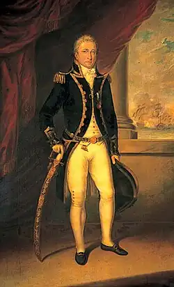 Captain Charles John Moore Mansfield (1760–1813) was a British naval officer who served in the Royal Navy during the American Revolutionary War, the French Revolutionary Wars and Napoleonic Wars. Unlike many of his dashing companions of this period, Mansfield is notable for his reticent social life which contrasted sharply with his dashing and action-filled military career.[1]