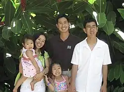 Djou is married to Stacey Kawasaki Djou, a Japanese American. They have three children. His surname is a French transliteration of the Chinese surname Zhou.[61] This originates from his grandfather's work at a French engineering company in Shanghai in the 1920s, where he was referred to as "Dijou", a name he later wrote on his immigration papers.[5]
