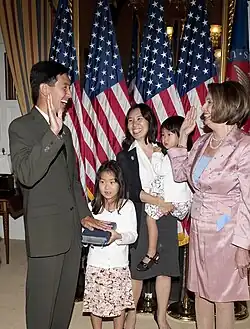 Djou was elected to Congress in a May 2010 special election with 39.68% of the vote against two Democratic opponents. He was defeated in the November 2010 general election by Colleen Hanabusa.[2] His election made him the first Thai American, as well as the first Republican of Chinese American descent, to serve in the House of Representatives. Prior to his election to Congress, he was a member of the Hawaii House of Representatives and the Honolulu City Council.