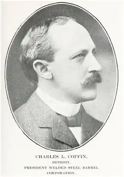 Charles L. Coffin (1844-1926)[1] of Detroit was awarded U.S. patent 428,459 for an arc welding process using a metal electrode. This was the first time that metal melted from the electrode carried across the arc to deposit filler metal in the joint to make a weld.[2] Two years earlier, Nikolay Slavyanov presented the same idea of transferring metal across an arc, but to cast metal in a mold.[3]