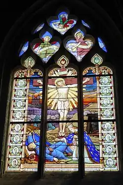 - 1924: creation in the southwest transept of a grisaille and installation of a fragment of the resurrection of Lazarus, dating from the late fifteenth century or the early sixteenth century. (Bay 34)[8]