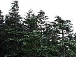 Nearby, Maries also re-discovered Abies sachalinensis, which had previously been identified by Carl Friedrich Schmidt, a German botanical traveller, on the Russian island of Sakhalin in 1866, but had not been introduced to Europe.[8]