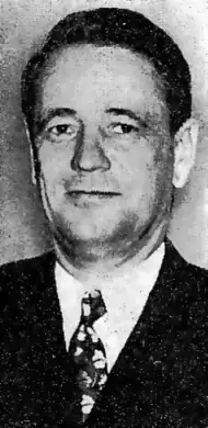 He served in the US Army during World War II, rising to the rank of brigadier general. With his financial background and experience as a lawyer, along with his ability to speak French, he was assigned to Allied Force Headquarters in Algiers as an advisor on economic and supply issues.[5] In 1943, he became Chief of Staff of the Allied Military Government and Deputy Chief of Civil Affairs for Sicily and Italy.[5] In 1944, he was named Assistant Chief of Staff for Military Government for the whole Mediterranean theater.[5] Wallace Deuel, a reporter for the St. Louis Post-Dispatch, remarked that he had to deal with "some of the most flamboyantly temperamental men of a dozen nationalities the world has ever seen; General George Patton, Field Marshall Bernard Montgomery and General Charles de Gaulle, just to name a few examples, and he got excellent results".[5] He earned the Purple Heart, Distinguished Service Medal, Legion of Honor, Croix de Guerre and Order of the British Empire.[1][6]