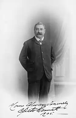 Bennett became a director on the 1897 launch of Jarrahdale Jarrah Forests & Railways Ltd.[16] It went into voluntary liquidation in 1901, Bennett being one of the liquidators.[17] Eight Jarrahdale timber companies were in 1902 consolidated into Millars of Western Australia.[18] Bennett was a director of Millars, and in 1914 and 1924 a director of Millars Timber & Trading Co., a successor company.[19][20][21][22] He had visited Western Australia in 1906 with Leama Robert Davies of London, another director of Millars and son of Maurice Coleman Davies, a founder of the timber industry there. In an interview for The West Australian, Bennett commented on the economics of jarrah (Eucalyptus marginata), used for railway sleepers in India, and karri (Eucalyptus diversicolor).[23][24][21]