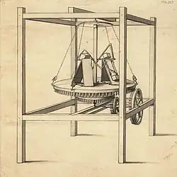 Charles Redheffer and his machine became well known in Philadelphia in 1812.[2] Redheffer claimed he had invented a perpetual motion machine and exhibited it in a house near the Schuylkill River in the outskirts of the city.[3] He charged an admission fee of $5 (some sources claim $1) for men to view it; depending on the source, women were admitted free or at a charge of $1.[4][5] The machine caused a sensation, and Redheffer lobbied for funds to build a larger version.[3]