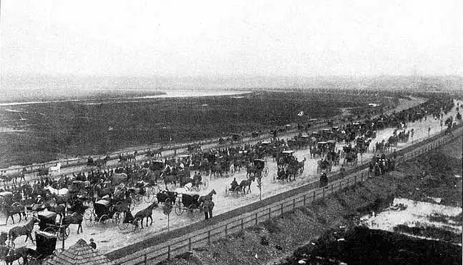 One of the functions of the speedway was to move the racing of horses and other pleasurable activities off of Brighton Road (now Commonwealth Avenue) west of Kenmore Square and Beacon Street in Brookline. As traffic on the roads increased, it became necessary to build the speedway.[1]