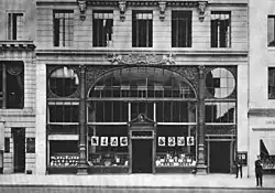 The building opened by May 18, 1913,[17][18] and became the seventh headquarters of Charles Scribner's Sons.[44] In addition to the bookstore and offices at 597 Fifth Avenue, Scribner's had a building at 311–319 West 43rd Street for its printing press.[45] The development of the 597 Fifth Avenue building was described by architectural writer Robert A. M. Stern in 1983 as "sure testimony to the rapid march of commerce to upper Fifth Avenue".[46] New York Times journalist David W. Dunlap, writing in 2012, said 597 Fifth Avenue was like "the Apple store of its day".[47] At opening, the bookstore contained shelves of books arranged along both the ground floor and the balconies. Some retail offices were also placed below the mezzanine.[18]