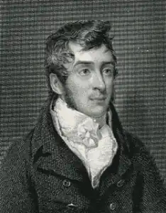 He soon abandoned the historical painting for a project which he hoped would be more remunerative, The Monumental Effigies of Great Britain. He published the first part in 1811; an accompanying advertisement explained that its purpose was to supply historical painters with accurate details of costume up to the reign of Henry VIII, to illustrate history and biography, and to provide accurate information on dress for productions of the plays of Shakespeare.[1] During 1815 he travelled Britain making drawings for Daniel Lysons' Magna Britannica.[1] In that year he was appointed historical draughtsman to the Society of Antiquaries, who sent him to Bayeux to make coloured drawings of the tapestry for publication in the series Vetusta Monumenta.[2] He made three visits to Northern France in 1816–19 for this project. On the first of these he also discovered the location of the monuments of the Plantagenets, which had been moved when the chapel at the abbey of Fontevraud in which they were housed was demolished during the French Revolution, and made accurate drawings of them.[3] He was elected a fellow of the Society of Antiquaries in 1819.[1]