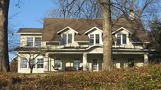 Charles Sweeton House, also known as Mount Pleasant School, is a historic home located in Center Township, Vanderburgh County, Indiana. The original two-room brick Mount Pleasant schoolhouse was built in 1888, and remodeled and expanded in 1926 into a two-story, Bungalow style private residence. The exterior is sheathed in stucco and the front facade features a full-width one-story porch with Doric order columns and a central eyebrow arch.[2]: 6