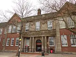 Former technical college, Stoke, with Vyse's frieze above the entrance