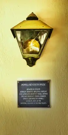 Built in 1938, the house's architecture reflects elements of Spanish Colonial Revival architecture.[2] However, with the house's two stories, low-pitched roofline, and second-story balcony on the front elevation, it also reflects Monterey style architecture, popular in large California homes built between 1925 and 1940.[3][2]