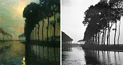 - He did not simply experiment with the camera but became a competent and avid photographer and used his instrument to compose and secure the views of Bruges canals and Flemish poplars which would be translated onto canvas in his winter studios.[3]