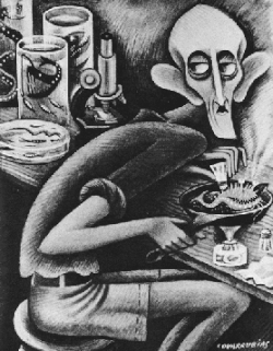 William Beebe (center) with Paul Howes and Inness Hartley in the laboratory at Kalacoon