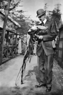 The last portion of Beebe's journey took him to China, from which they made an unplanned visit to Japan to escape a riot as well as a surge of bubonic plague.[79] When the plague and riots had subsided, Beebe returned to China to document the local pheasant species, then made a second visit to Japan to study pheasants kept in the Imperial Preserves there. In Japan, Beebe was given two cranes by the Imperial Household in exchange for a pair of swans, which were unknown in Japan.[80]