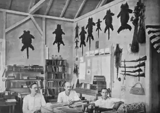 In 1916, Beebe traveled to Georgetown in pursuit of his earlier goal of establishing a permanent field research station in Guiana. After following several leads which came to nothing, his goal was realized when George Withers, who owned a rubber plantation on the Mazaruni River, offered him the use of a large house on his property for this purpose.[97] Soon after Beebe and his researchers moved into the plantation house, which was known by the name of Kalacoon, they were paid a visit by Theodore Roosevelt and his family. Roosevelt subsequently wrote an article about the station for Scribner's Magazine, which helped to build public support for the station.[98]