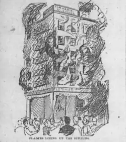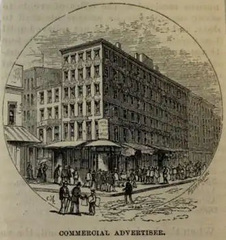 In 1891, a property inherited from his father, the Old Commercial Advertiser Building, was burned down, bringing losses of about $400,000.[20][21][22] In the same year, Beach is recorded acquiring 37 building lots on Wood Avenue in Bridgeport, Connecticut.[23][24] The Commercial building was situated on Fulton Street, Manhattan and was one of the landmarks of downtown New York.[22] It was for many years one of the seats of the New York Sun, the penny press newspaper owned by his grandfather, Moses Yale Beach.[22]