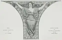 His mural The Triumph of Manhattan (1896) was a cycloramic view of New York Harbor, that encircled the Hotel Manhattan's rotunda. In the foreground, it featured Native Americans, European colonists, and historical figures such as Benjamin Franklin, Washington Irving, Samuel Morse, Robert Fulton, and John Jay, all paying their respects to the Greek-gowned "Empress Manhattan," who was surrounded by female attendants.[4]: 24 Turner later painted a mural of Greek gods and goddesses for the hotel's lobby.