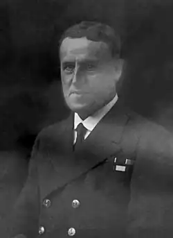 Born the son of a Castilian physician,[1] De Bartolomé joined the Royal Navy in 1885.[2] He was posted as a lieutenant on the staff of HMS Excellent, shore establishment at Portsmouth, on 1 February 1900.[3] He was promoted to commander on 31 December 1902,[4] and posted to the armoured cruiser HMS Drake on her first commission in January 1903,[5] serving in the Channel Fleet. Promoted to captain in 1905,[6] he was given command of HMS Dreadnought.[7] He served in the First World War and was appointed Naval Assistant to the First Sea Lord in 1912 and Naval Secretary in 1914.[8] He became Third Sea Lord and Controller of the Navy in 1918 in which year he also became Aide-de-Camp to the King; he retired in 1919 and then became Director General of Development at the Ministry of Transport.[2]