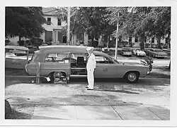 In view of the necessity for a Naval Hospital in this area, a hospital was authorized to be constructed by the NAVAL EMERGENCY FUND ACT[5] A contract was let with the Charleston Engineering & Constructing Co. to build the hospital.[6] Work commenced on June 1, 1917, and the hospital was commissioned on July 31, 1917, in spite of many difficulties encountered in obtaining enough labor and a minor strike among the carpenters. The hospital was the original Naval Hospital built on the site located on the Medical Department Property that was purchased in 1902. The hospital consisted of 19 temporary, wooden buildings with a bed capacity of 250. These buildings included one administration building, one office building, one building for women nurses, nine ward buildings, one galley, a mess hall, garage, laundry, power house, stores house, and recreation hall. These were all one-story buildings, owing to the increased patient load, additional beds were urgently required, and by September 1918[7] fourteen additional buildings were constructed which increased the bed capacity to 1000 beds. These additional buildings were of wood finished in stucco and were erected south of the hospital reservation. The hospital made use of an ambulance to transport the sick[8] from outlying stations of the Sixth Naval District and from vessels in the harbor to the hospital.