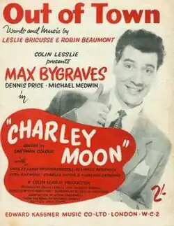 Charley Moon is a 1956 British musical film directed by Guy Hamilton and starring Max Bygraves, Dennis Price and Shirley Eaton.[2] The screenplay and lyrics are by Leslie Bricusse. The story is based on Reginald Arkell's novel of the same name.