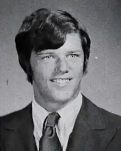 In 1969, the Bakers moved to Washington, D.C., where the elder Baker was named deputy undersecretary of the U.S. Department of Transportation in the Nixon Administration, becoming the department's assistant secretary for policy and international affairs the next year, and in both capacities serving under Secretary of Transportation and former Massachusetts governor John Volpe.[13][18] His father also served as undersecretary of the U.S. Department of Health and Human Services in the Reagan Administration under U.S. Representative Margaret Heckler.[20] The Bakers returned to Needham in 1971, where Baker attended Needham High School.[18][21] He served on the student council, played basketball, and joined DeMolay International, a youth fraternity organization. In a Bay State Conference championship basketball game, a ball he inbounded with two seconds left on the clock was tipped away by a player from Dedham High School, causing Needham to lose by one point.[22][23] Baker graduated from Needham High School in 1975, alongside future Governor of New Jersey, Phil Murphy.