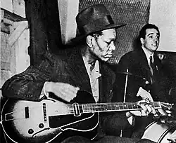 Christian was born in Bonham, Texas. His family moved to Oklahoma City, Oklahoma, when he was a small child. His parents were musicians. He had two brothers: Edward, born in 1906, and Clarence, born in 1911. Edward, Clarence, and Charlie were all taught music by their father, Clarence Henry Christian. Clarence Henry was struck blind by fever, and in order to support the family he and the boys worked as buskers, on what the Christians called "busts." He would have them lead him into the better neighborhoods, where they would perform for cash or goods. When Charles was old enough to go along, he first entertained by dancing.[1] Later he learned to play the guitar, inheriting his father's instruments upon his death when Charles was 12.[2]