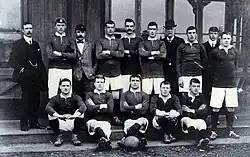 He moved on to Football League First Division club Nottingham Forest in 1902,[8] where he spent periods partnering both James Iremonger and Walter Dudley, and played in both full-back positions.[9] Towards the end of his first season with the club, he came into consideration for the Scotland national team when he appeared in the Home Scots v Anglo-Scots annual trial match[10] (he had also taken part in a trial 12 years earlier in his amateur days with Dundee Our Boys).[11] In 1905, he travelled with Forest on their tour of Argentina and Uruguay.[12][13] In all, he spent five seasons and made 136 League appearances at Forest.[2]