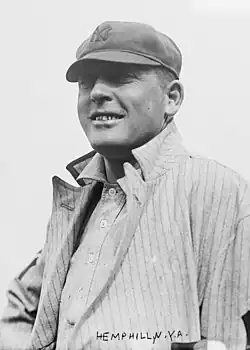 In 1901, Hemphill became the first opening day right fielder in the history of the Boston Red Sox. After that he played for the Cleveland Bronchos, St. Louis Browns and the New York Highlanders. His most productive season came in 1902, when he hit a combined .308 with Cleveland and St. Louis. He enjoyed another good season in 1908 with the Highlanders, hitting .298 with a career-high 42 stolen bases. His final season in the majors came in 1911 with the Highlanders, where he was a teammate of Chet Hoff, in what would be Hoff's only big-league campaign. Hoff wound up being the longest-lived player in major league baseball history, finally passing away at the age of 107 in 1998–nearly a century after his old teammate Hemphill first played in the majors.