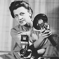 Inspired by Dorothea Lange, she began to produce informative social reform photographs. In 1943, she worked as an assistant to Gjon Mili, doing advertising photography for Life and Vogue. In 1945, she worked freelance with Standard Oil of New Jersey, illustrating the story of oil in home life and in fighting the war.[2]