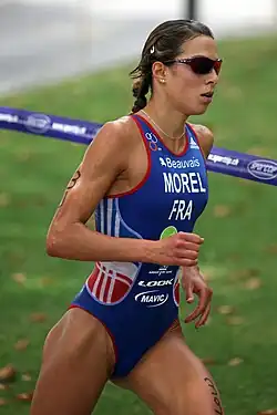 Tall as she is (1.72m), Morel has been featured several times as a maillots de bain model, e.g. on the frontpage and in a special section of the leading French magazine Triathlète.[2] The French media often depicted Morel and Emmie Charayron, the Junior World Champion of 2009, as the most promising prospects for the 2012 Summer Olympics. The leading French magazine, Triathlète, for instance, dedicated its famous two-page column called "Confrontation" to the two young triathletes.[3]