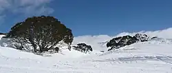 The resort receives, on average, more natural snow than other Australian resorts because of its elevation. In 1981, one weather event dropped snow to the extent that the Kangaroo Ridge triple chair terminus was buried in snow, over the top of the pylon, by the cornice by up to 0.5 m.[40] This level of snow fall is an exception.[41]