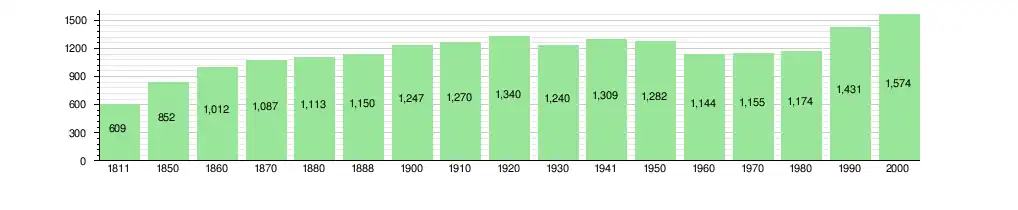 Charmey had a population (as of 2011) of 1,852.[3] As of 2008, 12.9% of the population are resident foreign nationals.[6] Over the last 10 years (2000–2010) the population has changed at a rate of 16.7%. Migration accounted for 17.5%, while births and deaths accounted for -0.1%.[3] Most of the population (as of 2000) speaks French (1,385 or 88.0%) as their first language, German is the second most common (115 or 7.3%) and Portuguese is the third (27 or 1.7%). There are 2 people who speak Italian.[7]