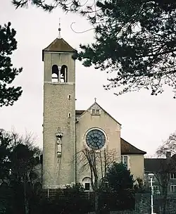 One consequence of the development of the Malmesbury Park Estate was the provision of a church just to the north, in the plot now bordered by Charminster Road, Richmond Wood Road and Richmond Park Avenue. This was The Church of the Annunciation, designed by the 26-year-old Giles Gilbert Scott with George Frederick Bodley as joint architect; the latter had already overseen the young Scott's work on Liverpool Cathedral.[8] The builders were McWilliam & Son of Bournemouth, and the building was completed in 1907.[9] It was originally put up as a chapel of ease to the Church of the Sacred Heart, to meet the needs of Catholics from the Winton and Malmesbury Park areas who were unable to travel to the latter church in central Bournemouth.[10]
