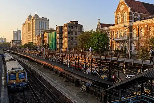 The BB&CI suburban line from Back Bay to Virar opened on 1867.[5] The station was itself opened on 3rd September 1868.[6] Passenger traffic on the station increased by 1890, and a local newspaper, The Gujarati reported that as there was just one booking office for both the Up and Down passengers, it would frequently happen that some passengers would not be able to get their tickets in time, and therefore unable to board their trains. It was suggested that an additional booking office be opened either on the town line, or somewhere in Bhuleshwar.[7]