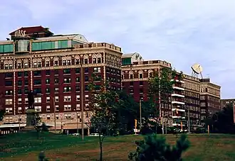 In 1961, the Koplars merged the two hotels into The Chase-Park Plaza.[5] The Koplar family sold the hotel to a group of investors called Chase Hotel Redevelopment Corporation in 1981.[6] They defaulted on their loan and the 1700-room hotel was seized by their lender, GE Capital, in 1983. GE closed the hotel rooms in the Park Plaza tower in 1985 and converted it at a cost of $12 million to an apartment building, which opened in 1988. In 1989, with business declining, GE closed the hotel in the remaining Chase wing and auctioned off the building's contents in 1991.[7]